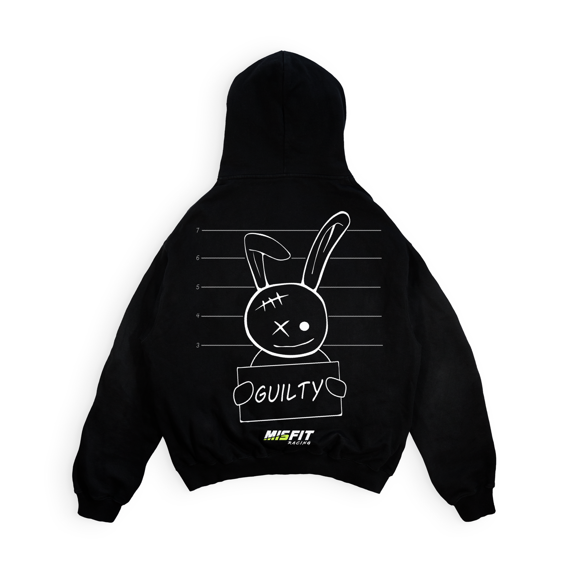 The Misfit bunny takes the stand again, blown up in bold across heavyweight fleece. The Guilty Bunny Hoodie is cozy armor for the reckless and the unapologetic, your street uniform with attitude stitched in.